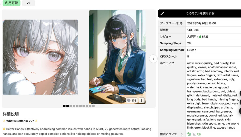 商用可否や利用条件はモデルページごとに表示されているため、生成前に必ずチェックする習慣をつけましょう。