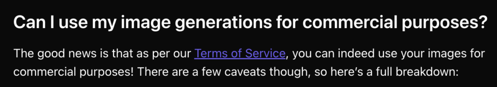 公式ヘルプでも、利用規約(Terms of Service)に基づき、生成した画像を商用目的で使えることが明記されています。