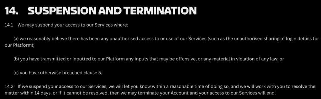 規約では、違反があった場合にコンテンツ削除やアカウント停止などの措置を取る権利をサービス側が保持することも明記されています。