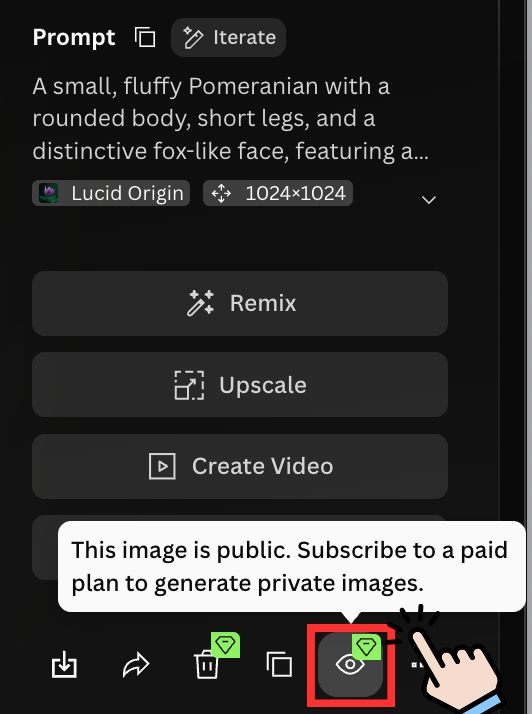 Leonardo AIでは、生成した画像を「Public(公開)」にするか「Private(非公開)」にするかを設定できます。