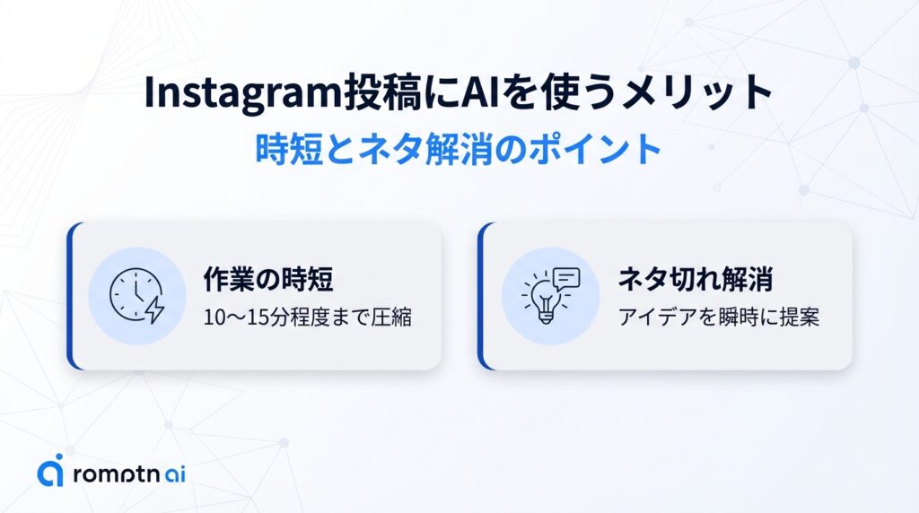 AIを活用したInstagram投稿には、主に以下の2つのメリットがあります。それぞれ詳しく見ていきましょう。