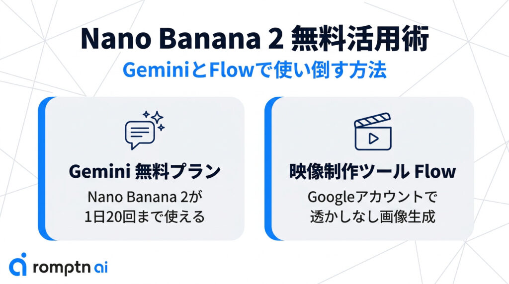 ・「Nano Banana 2」はGeminiやFlowで無料で活用することができる