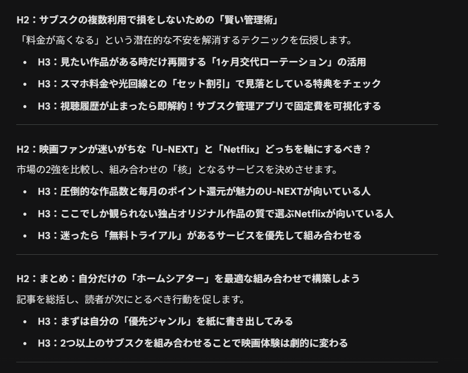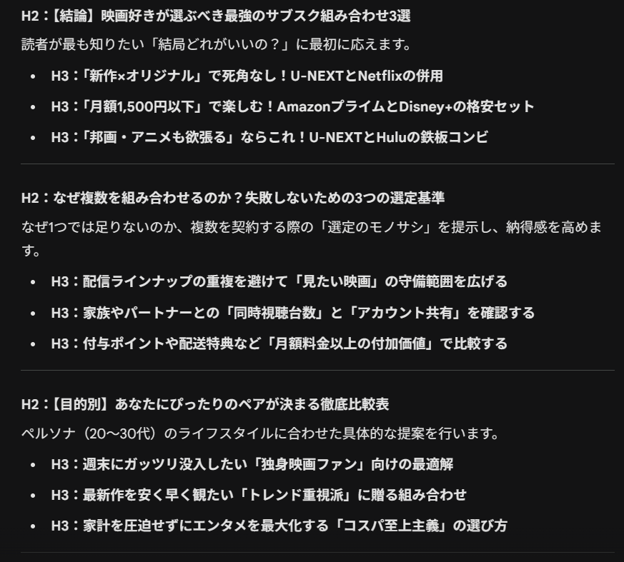 ①見出し構成を生成するプロンプト例