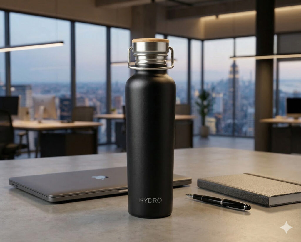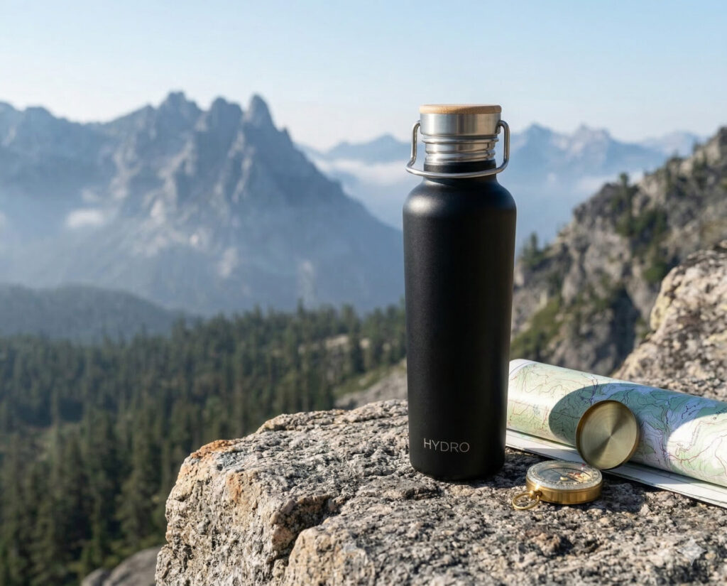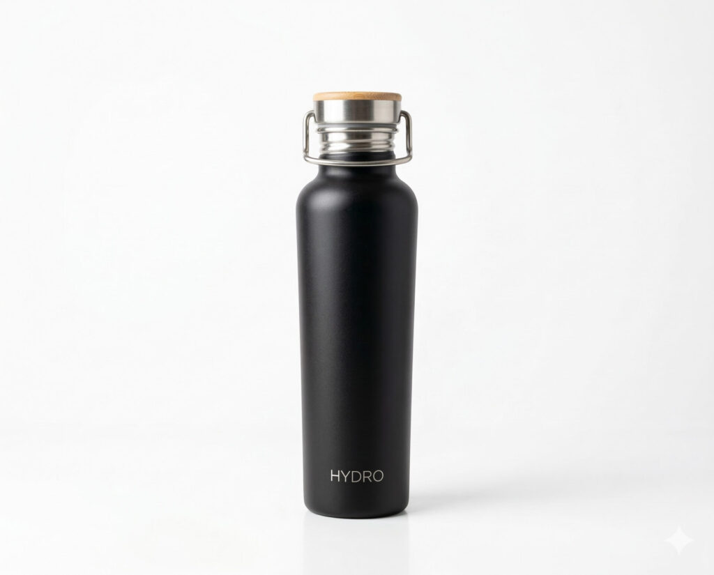 例えば[訴求軸]を[デザイン性]、[季節テーマ]を[夏]として水筒の商品画像を生成してみました。
