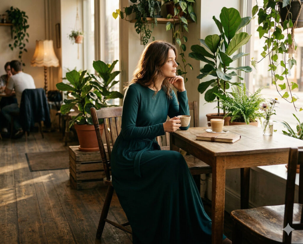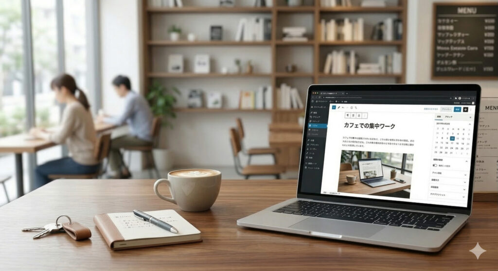 今回は使用シーンを「外出先のカフェ」として画像を生成してみました。