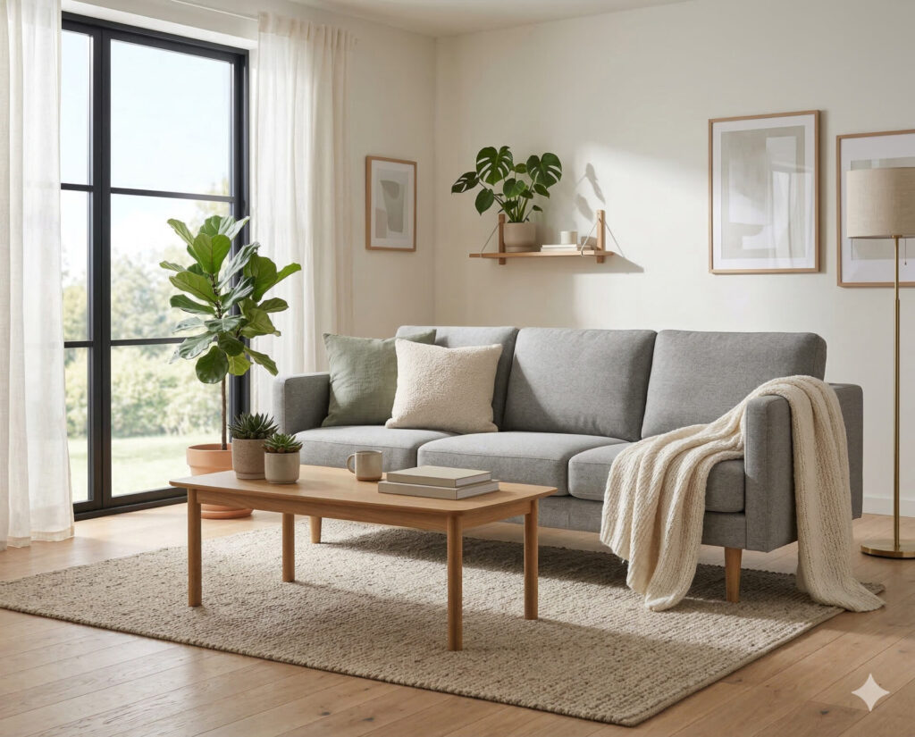 - ソファを北欧風リビングに設置したイメージ