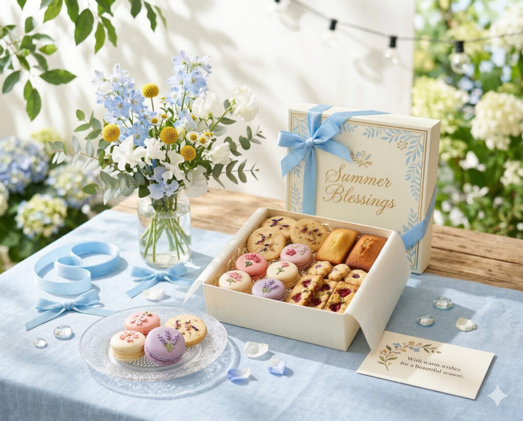 たとえば焼き菓子の詰め合わせなら、春は花、夏は涼しげな演出、冬は温かみのあるクロスや照明を加えるだけでも、特集や広告での使いやすさが増します。ギフトECでは「贈るシーン」が見えると購買につながりやすくなります。