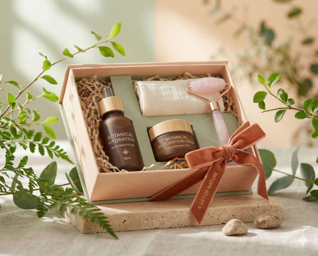 もっとも始めやすいのが、商品本体はそのまま残しつつ、背景だけをAIで差し替える方法です。白背景の商品画像から、ナチュラル、ラグジュアリー、季節感のある背景へ展開するだけでも、見え方は大きく変わります。