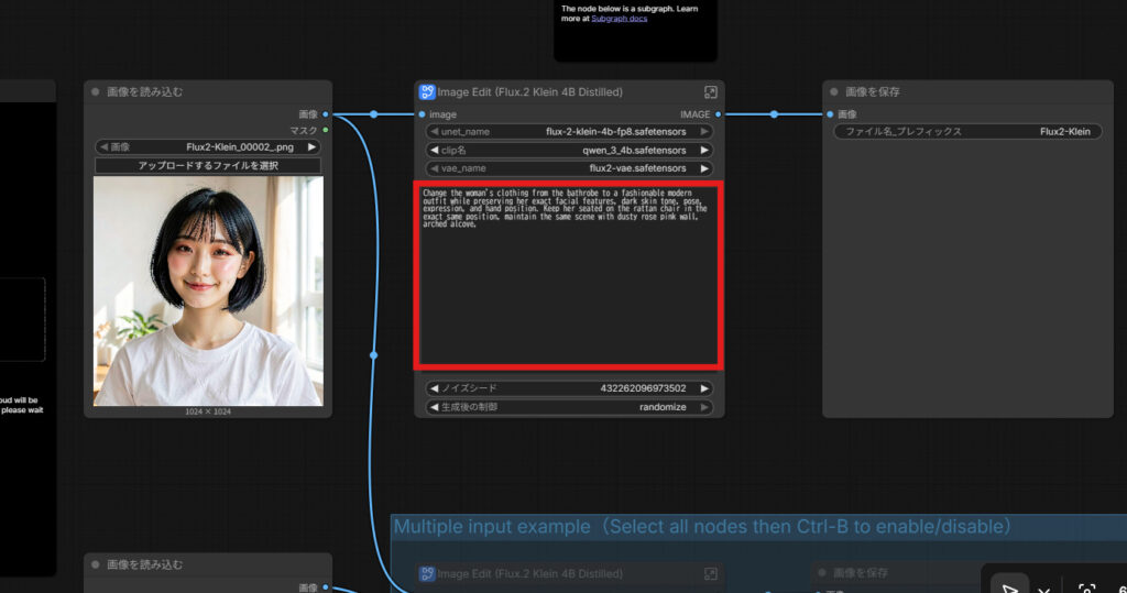 Flux2.Klein4bは顔の描写精度が非常に高いため、この顔固定技術と組み合わせることで、「実在のモデルを撮影した」としか思えないクオリティを維持できます!