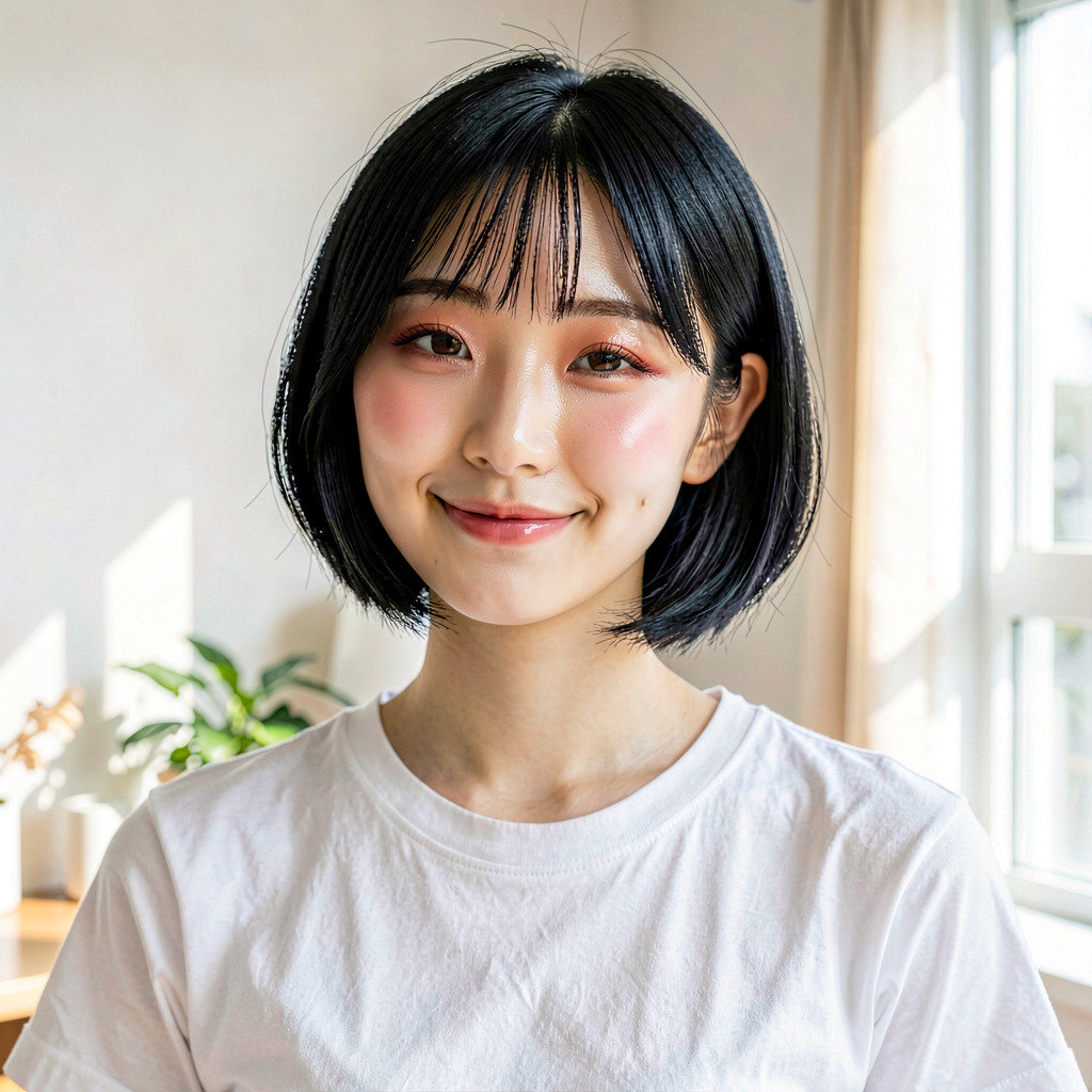 A realistic photo of a beautiful Japanese woman standing in a Tokyo street at golden hour. She has natural skin texture, soft smile, brown eyes, and black hair. Wearing a casual linen shirt. Cinematic lighting, bokeh background, 8k resolution, highly detailed, photorealistic, shot on 35mm lens.〇生成結果