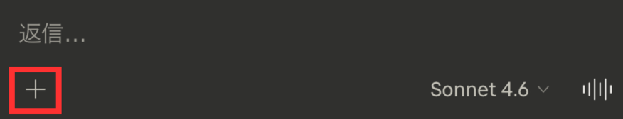 - ステップ1チャット入力欄の「+」アイコンをクリック