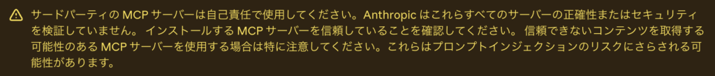 加えて、サードパーティ製のMCPサーバーは自己責任で利用するよう注意喚起もされています。