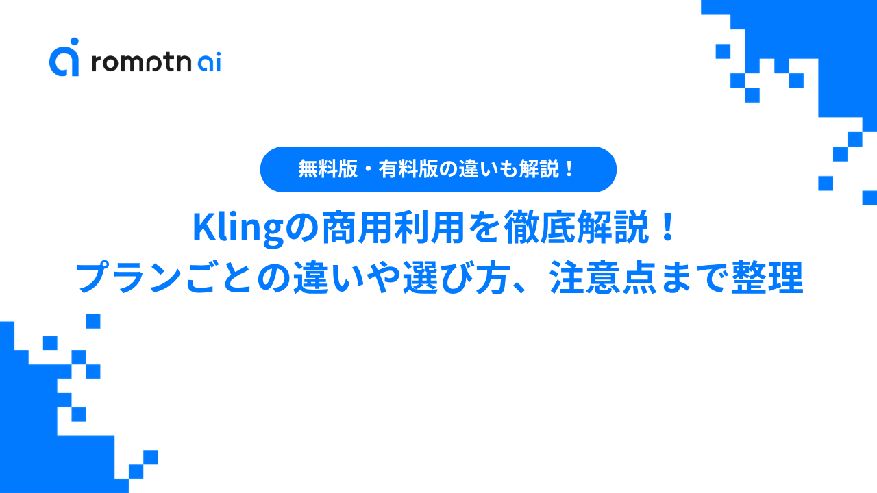 この記事では、Klingの商用利用について、公式規約の根拠、料金プランごとの違い、商用利用にあたる使い方、注意したいポイント、目的別のプランの選び方までまとめて整理します。読み終えるころには、Klingを仕事や収益化に使う前に何を確認すべきかがひと通りわかるはずです。