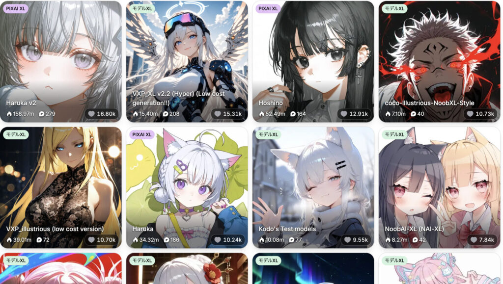 PixAIはAIモデルの世界最大級プラットフォームであるCivitaiとの連携機能を実装しています。