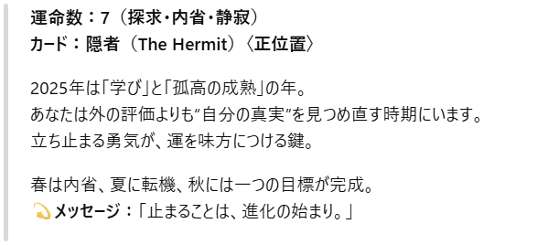 プロンプトを少し工夫するだけで、プロ占い師級の本格的な占いが体験できます!