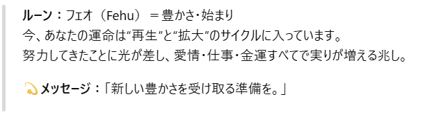2000年4月1日生まれの私の今月の運勢を、ルーン占いで1文字引きしてください。 ルーンの意味とメッセージを教えてください。
