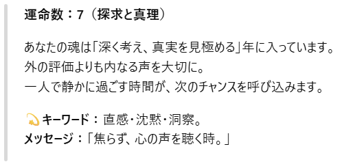 ChatGPTは自動で計算し、その数字の象徴からメッセージを導き出します。