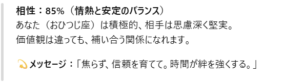 ChatGPTの恋愛占いは、誕生日や相手の特徴から「相性」「出会いのタイミング」「今の関係性」まで分析できます。
