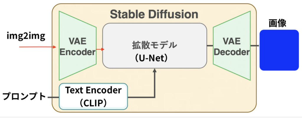 基本的な流れとしては [ プロンプト→ CLIP → U-Net → VAE Decoder → 画像] と思ってください。