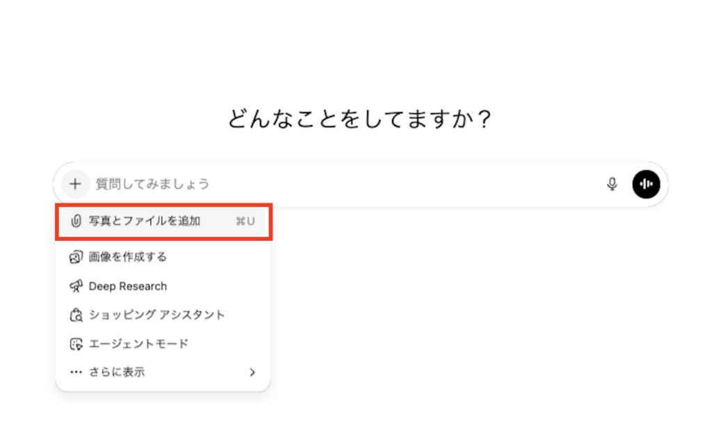 - Step1ChatGPTの入力欄にある「クリップアイコン(添付)」をクリック