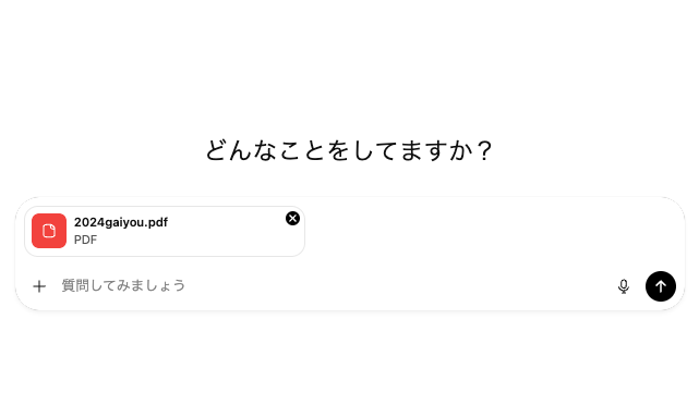 ※PDFのアップロード機能はChatGPT Plus(有料版)で利用できます。無料版の場合は、PDFからテキストをコピーして貼り付ける方法で対応してください。