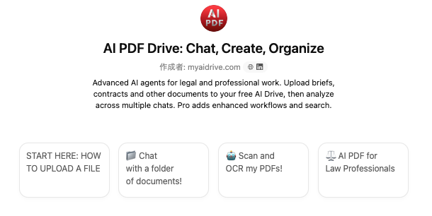 Ai PDFは、PDFファイルの要約・検索・管理に特化したGPTsです。専用のクラウドストレージ「AI Drive」と連携しており、大容量のPDFファイルも効率的に処理できます。
