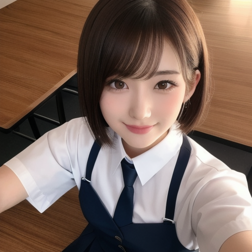 realistic Japanese cute, girl,18 years old, short hair, smile,
