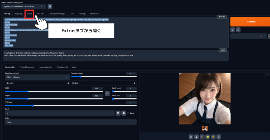 元画像を使って『Extras』と『Hires.fix』を比較しましょう!