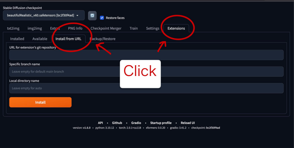2、「Extensions」タブに移動し、「Install from URL」タブを選択します。