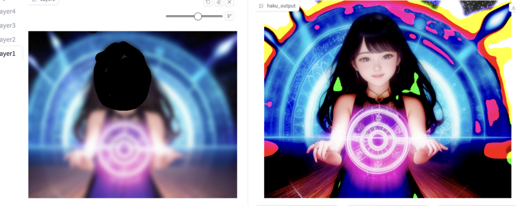 Blendのレイヤーと組み合わせてボカシた画像と、マスク加工した画像を重ねたりもできます。