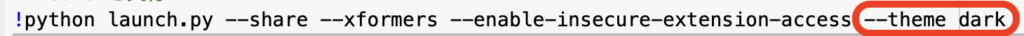 それだけで「http://127.0.0.1:7860/?__theme=dark」のアドレスにジャンプします。