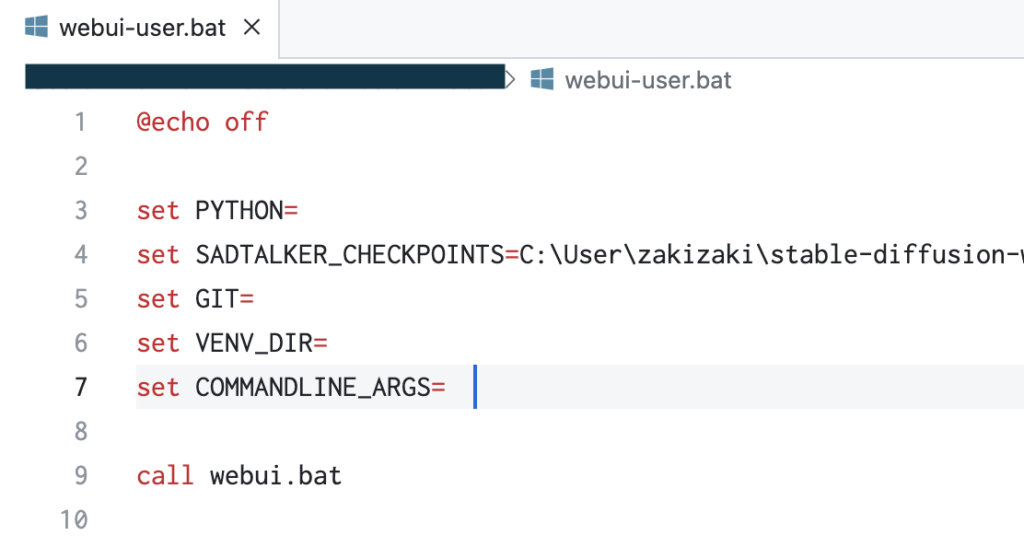 「stable-diffusion-webui」のフォルダから「webui-user.bat」を開きます。