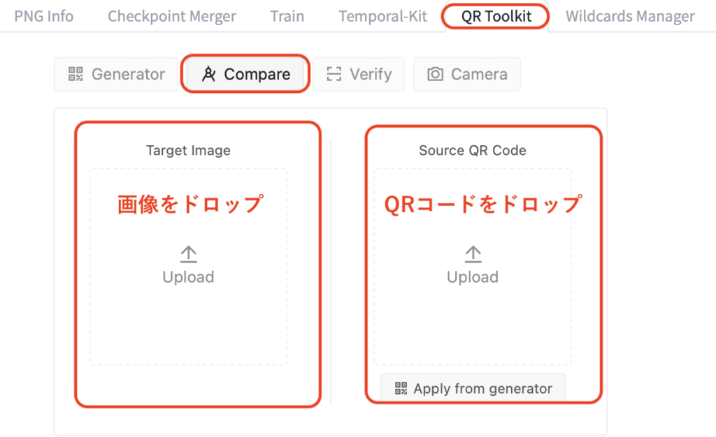 Target Imageに生成した画像を、Source QR CodeにQRコードをドロップします。