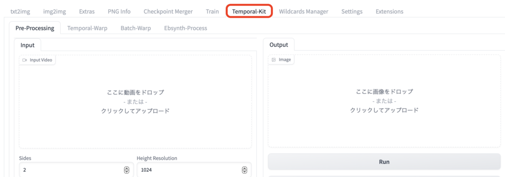 - 「TemporalKit」「FFMPEG」「EbSynth」を準備する