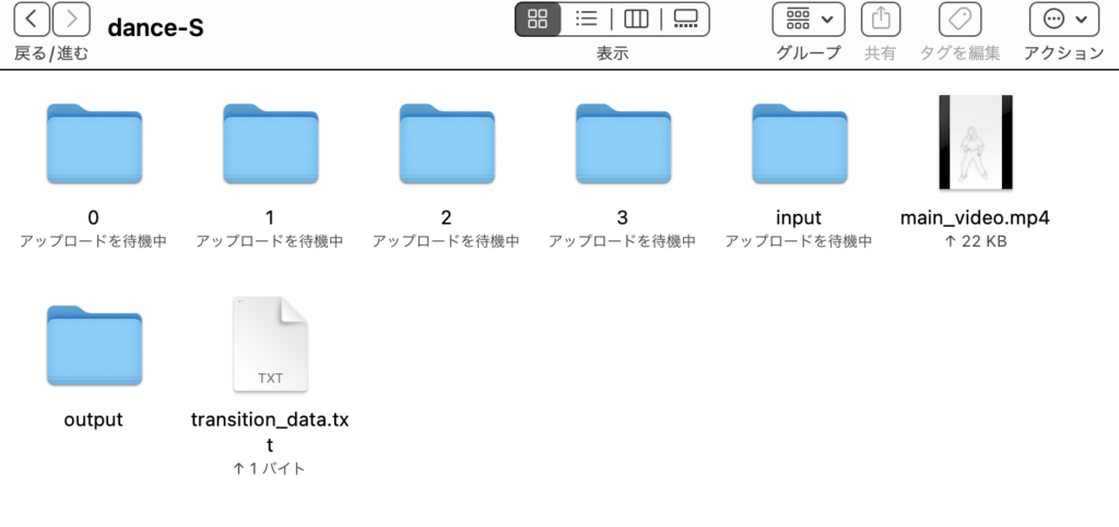 ②で作ったフォルダの中に.mp4としてアニメーションファイルが作成されています。