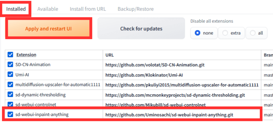 ※sd-webui-inpaint-anythingにチェックが入っているか確認してください。
