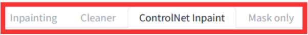 - ControlNet Inpaint : Inpaintingと似ているがより詳細に変更部分の調整が可能