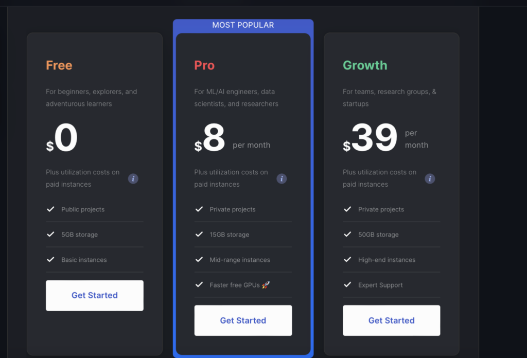 Freeプラン、8ドルのProプラン、39ドルのGrowthプランがあります。