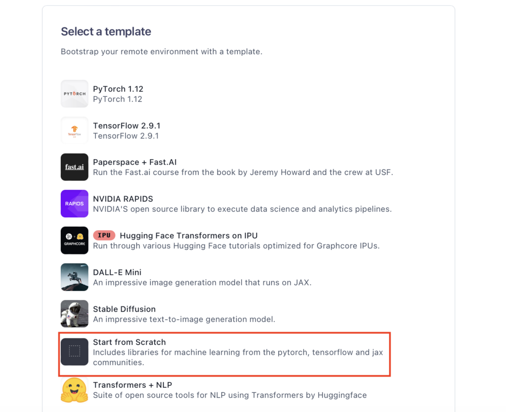 赤い色をしている「CREATE」を押すと、新しいNotebooksの作成画面になりますので、Start from Scratch を選びます。