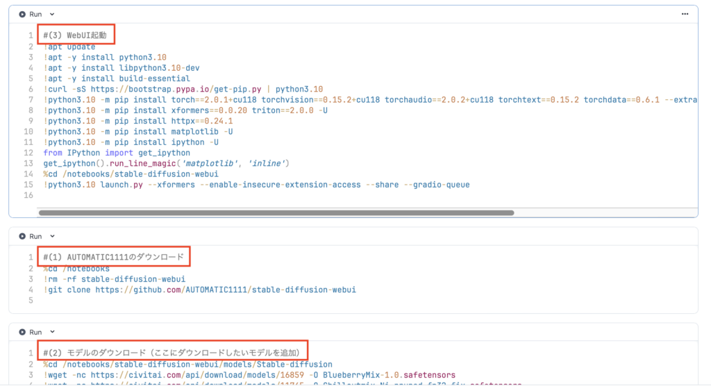 #(3)Webuiの起動の部分だけを実行してください。