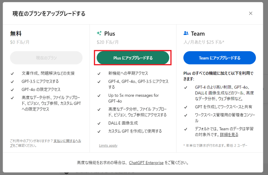 ChatGPT Plus加入時の注意点