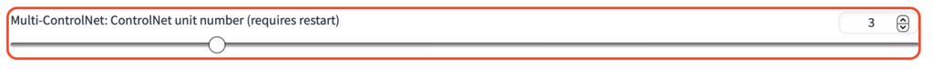 はsettings タグからControlNetを選択して「Multi-ControlNet: ControlNet unit number (requires restart)」の値を「3」くらいにしておきましょう。