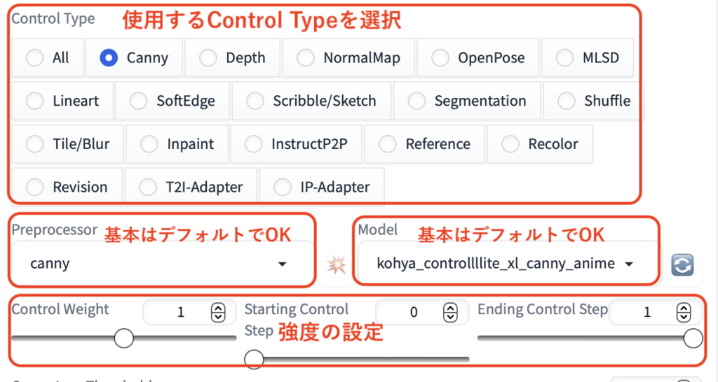 また、今回初めてControlNetを使う方はどのControl Typeで何ができるのかがまるでわからないと思います。