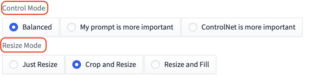 Resize Mode は参照画像と生成画像のサイズが合わない時に変更してください。
