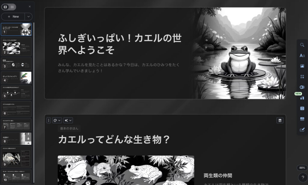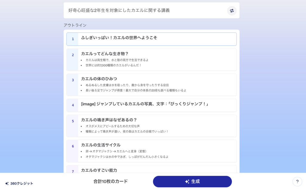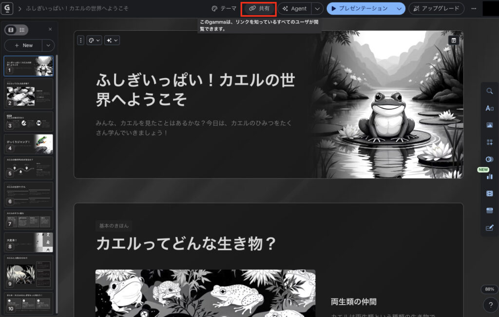 今回は約10分ほどで10枚のスライドが生成されました。