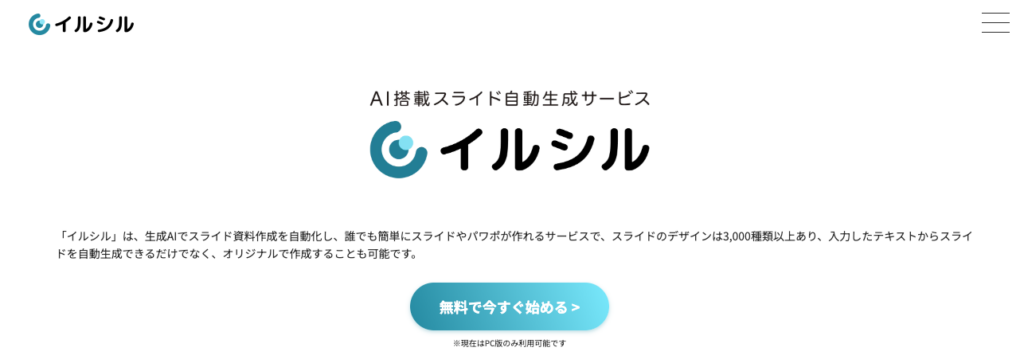 イルシルは、日本企業の株式会社イルシルが開発・提供しているAI搭載のスライド自動生成ツールです。上場企業の1,300社以上、3社に1社が利用中で、個人から大企業まで幅広い規模で導入されています。
