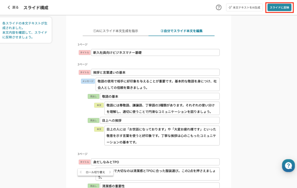 - ステップ5スライドが生成される