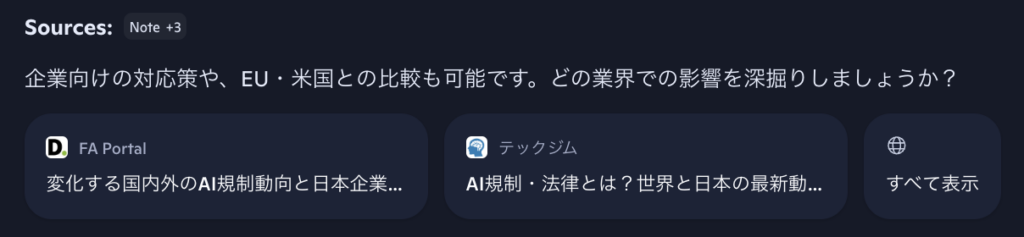 (その後、情報源の明記を依頼すると情報源もアウトプットしてくれました。)