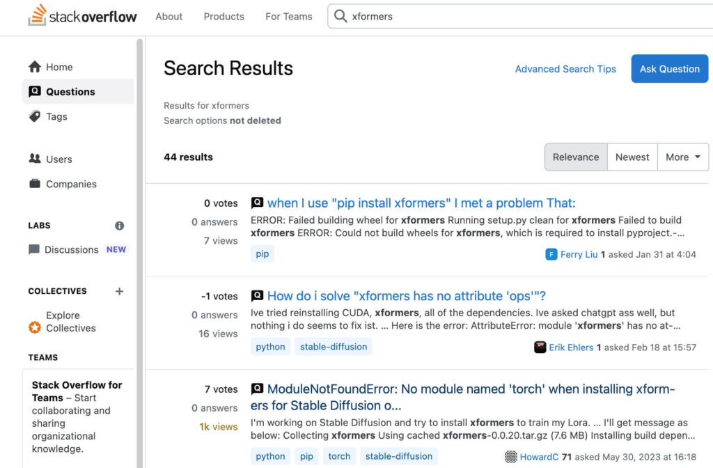 https://stackoverflow.com/search?q=xformers&s=db83821f-aa71-43bb-8d0a-105f24341fef