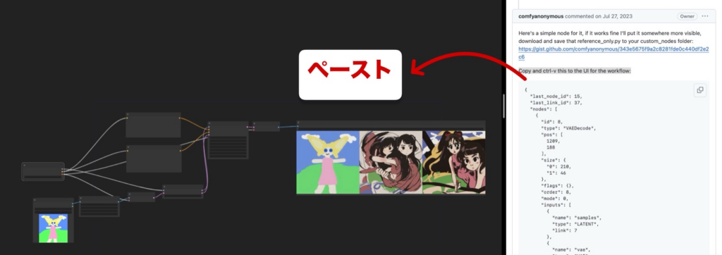 2.コピーしたワークフローをComfyUIの画面上にペーストします。